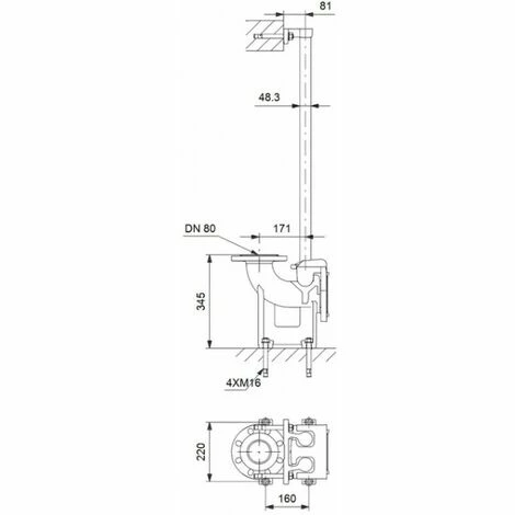 für horizontale Trockenaufstellung, mit Schrauben, Flachdichtung und Ankerbolzen mit Muttern